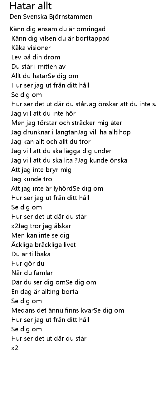 | Hur ser det ut d r du st rJag nskar att du inte s g mig | |
