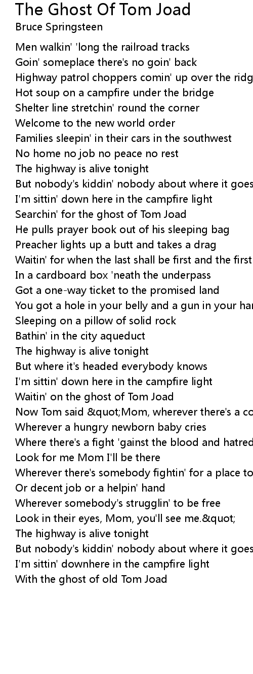 Now Tom said "Mom, wherever there's a cop beatin' a guy |
