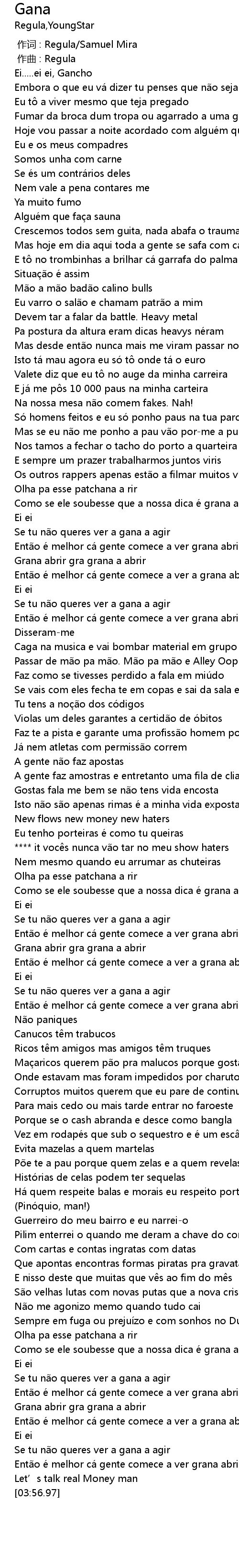 | [03:32.45] | Ent o é melhor cá gente comece a ver grana abrir |