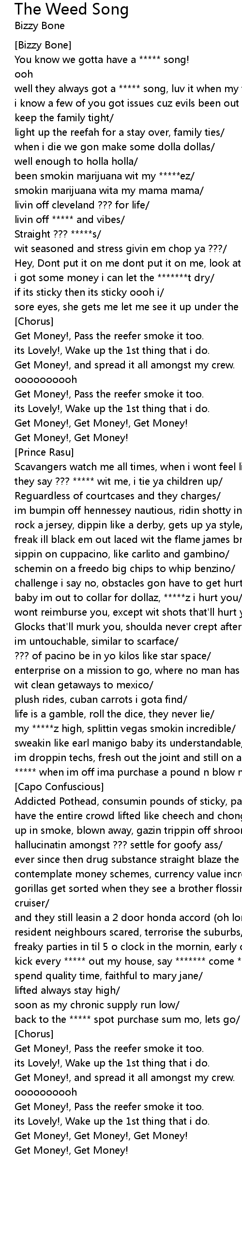 Get Money!, Pass the reefer smoke it too. |