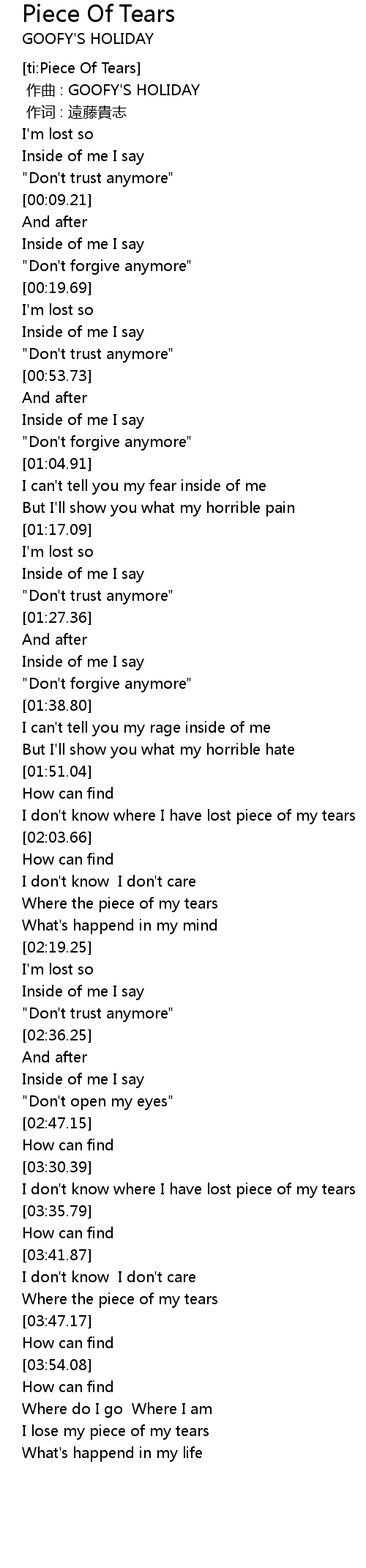 | [02:31.39] | " Don' t trust anymore" |