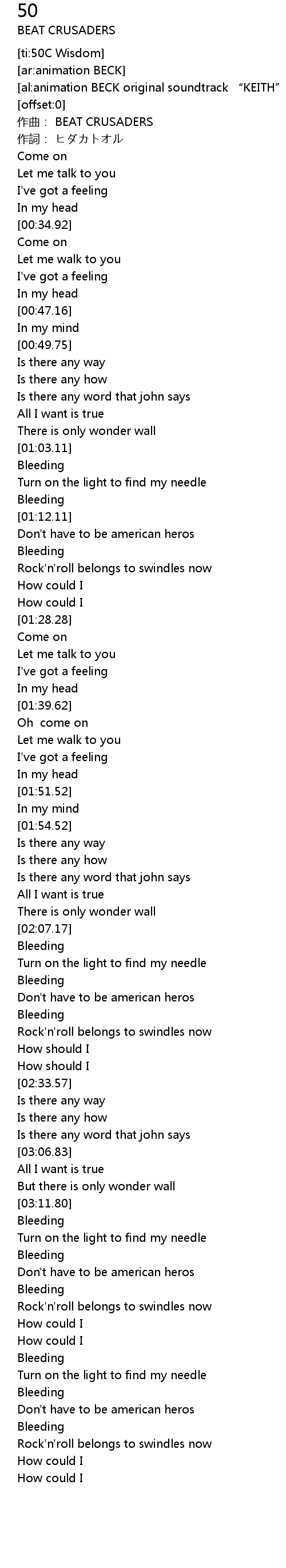 | [00:01.36] | zuo qu: BEAT CRUSADERS |