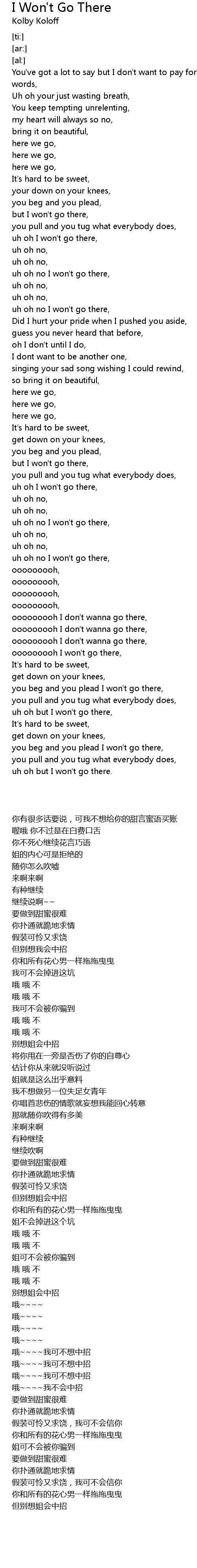 you beg and you plead I won't go there, |