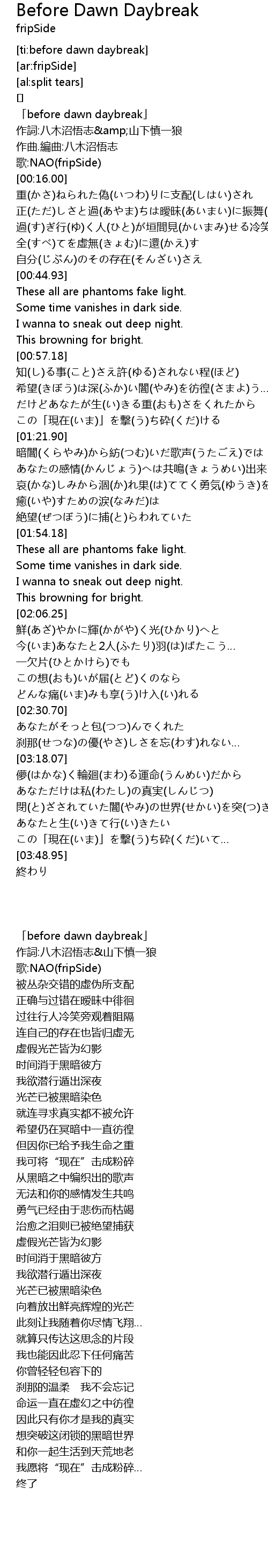 | [00:00.00] | 「before dawn daybreak」 |