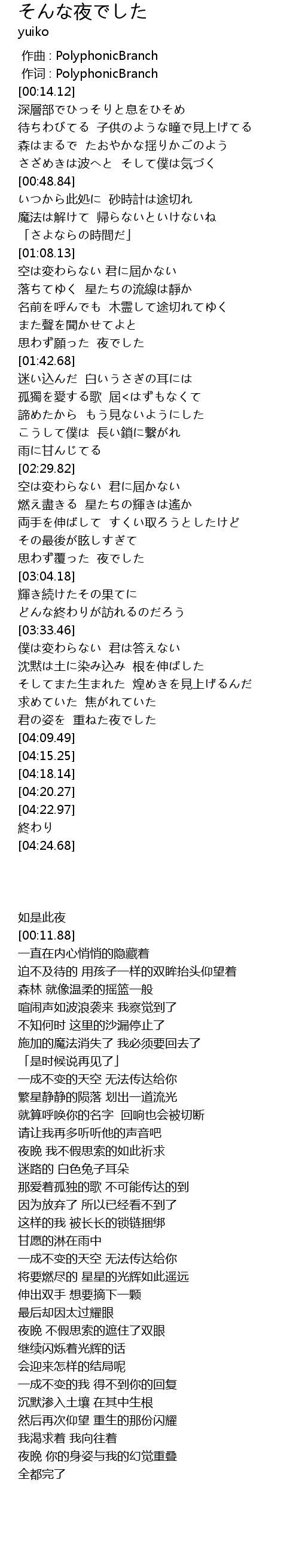 | [00:00.00] | zuo qu : PolyphonicBranch |