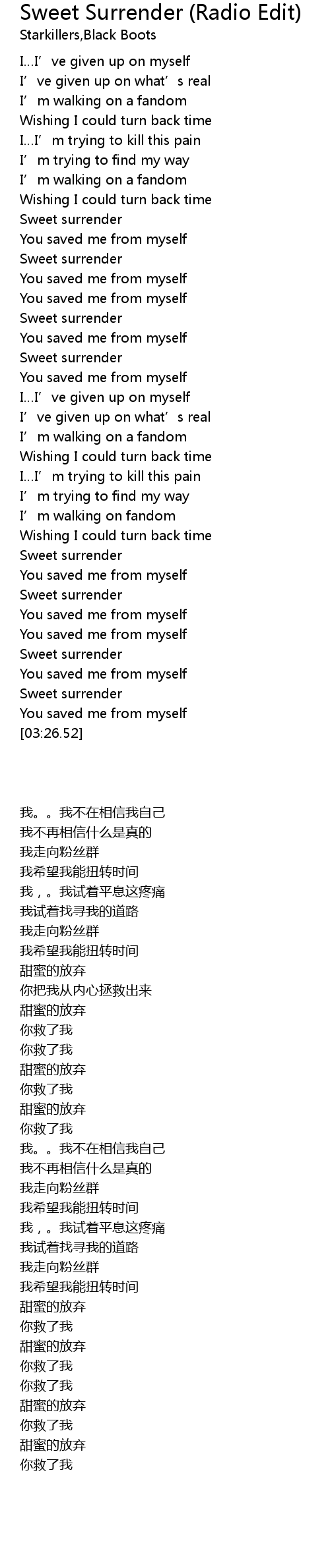 | [03:23.50] | Sweet surrender |