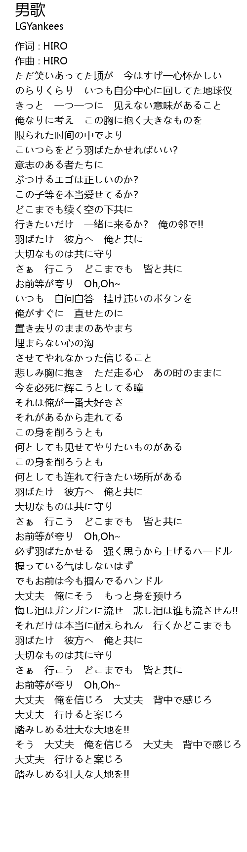 | 大丈夫 俺を信じろ 大丈夫 背中で感じろ | |
