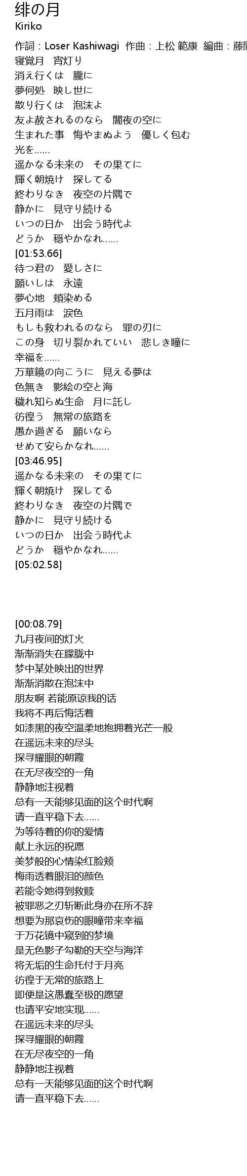 | [03:18.43] | 穢れ知らぬ生命 月に託し |