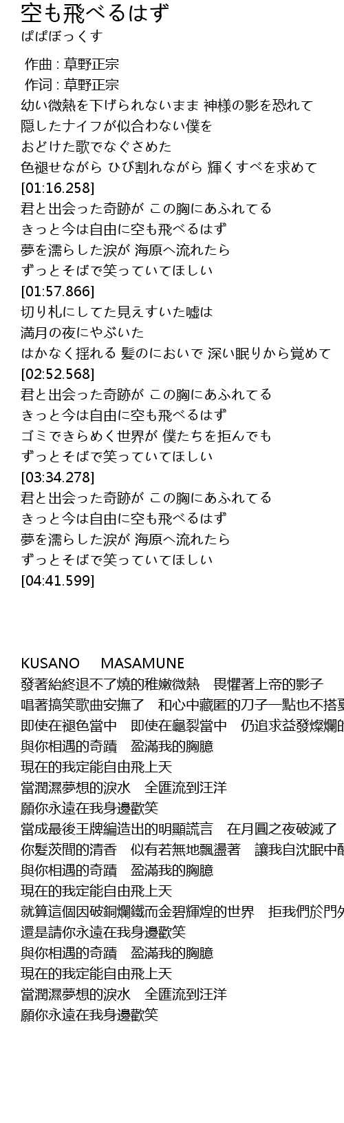 | [00:01.00] | 作词 : 草野正宗 |
