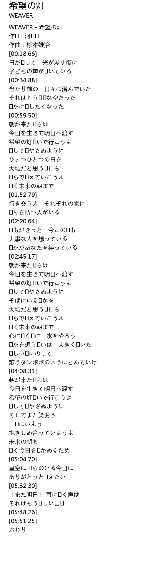 | [04:35.85] | 希望の灯�いで行こうよ |