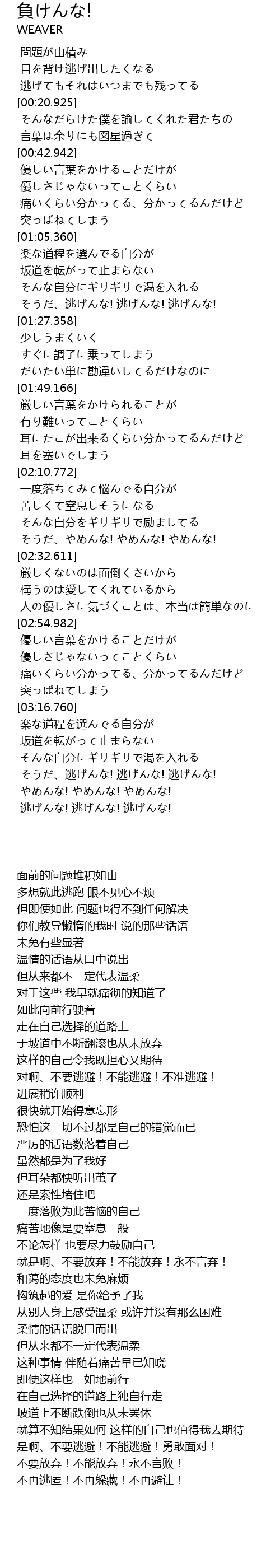 | [01:20.851] | そうだ、逃げんな! 逃げんな! 逃げんな! |