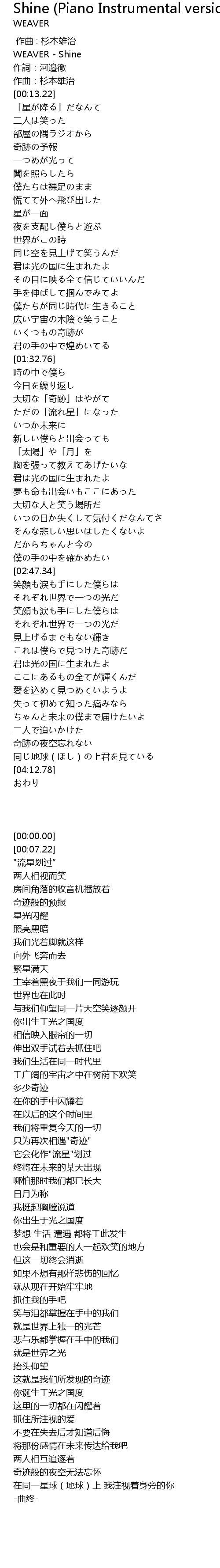 | [00:00.00] | WEAVER - Shine |