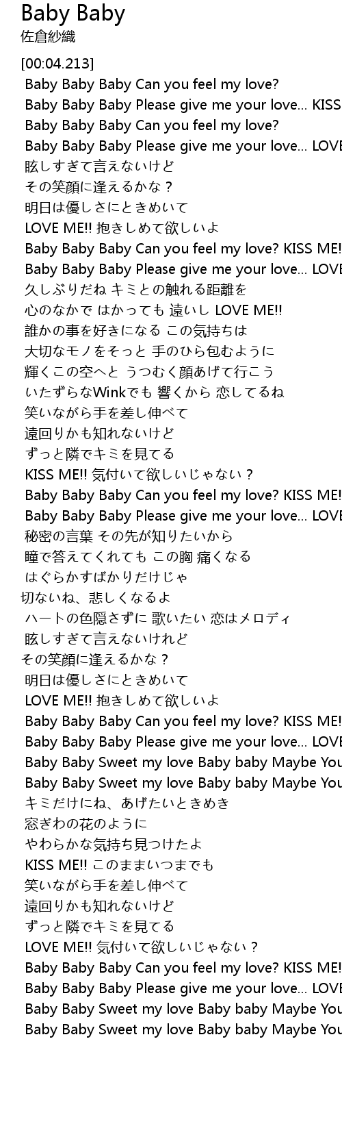 | [00:05.203] | Baby Baby Baby Can you feel my love? |
