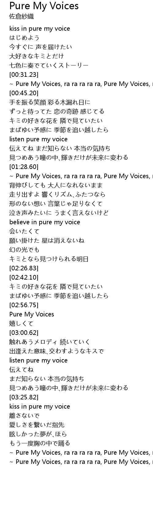 | [03:55.07] | Pure My Voices, ra ra ra ra ra, Pure My Voices, ra ra ra |