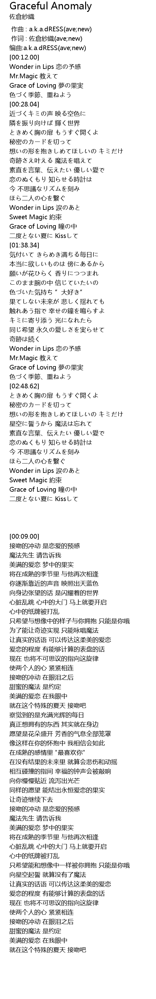 | [00:00.00] | 作曲 : a.k.a.dRESS(ave;new) |