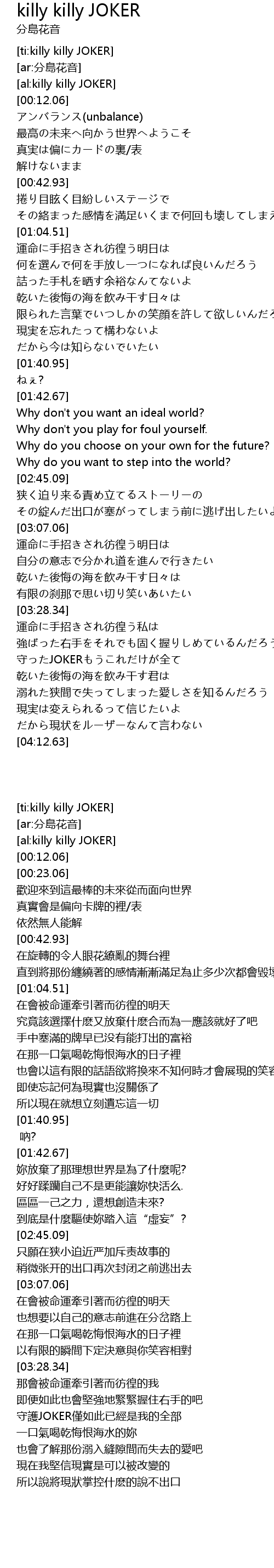 | [ti:killy killy JOKER] | |