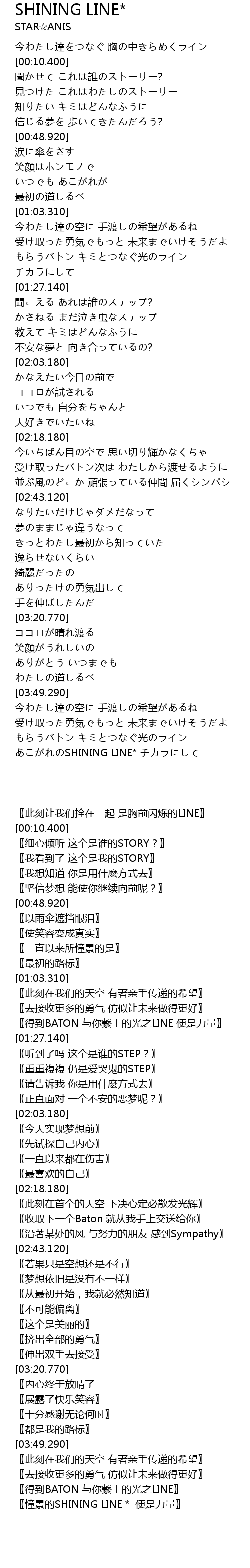 | [04:03.390] | もらうバトン キミとつなぐ光のライン |