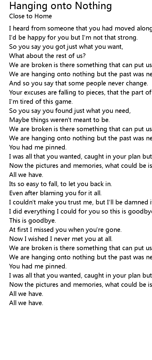 We are hanging onto nothing but the past was never there. |