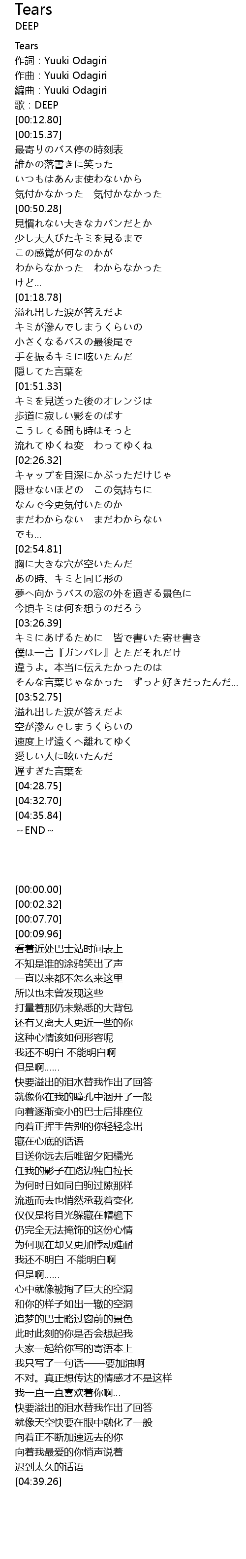 | [00:02.32] | 作詞:Yuuki Odagiri |