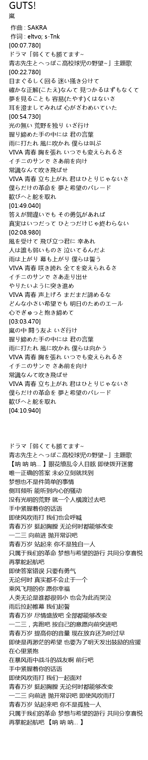| [03:50.030] | VIVA 青春 立ち上がれ 君はひとりじゃないさ |