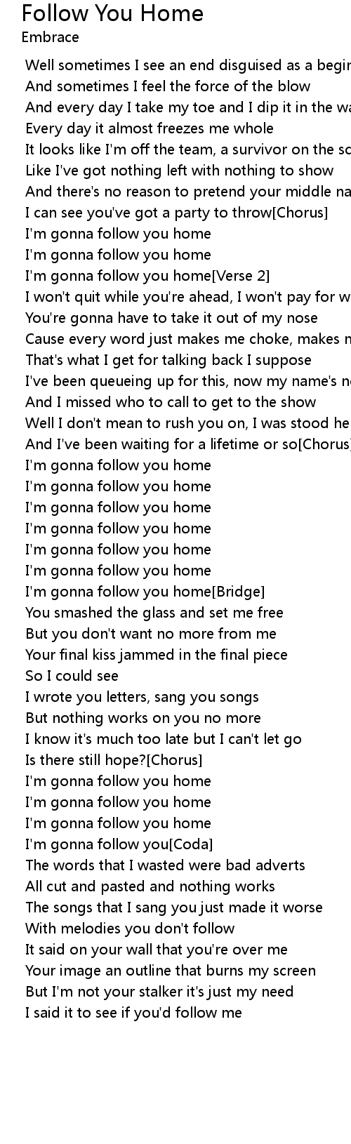 I'm gonna follow you home[Verse 2] |