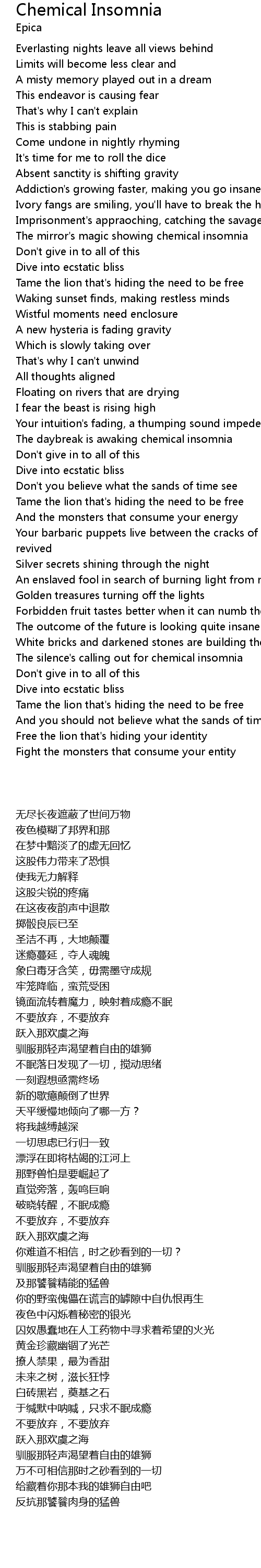 The silence's calling out for chemical insomnia |