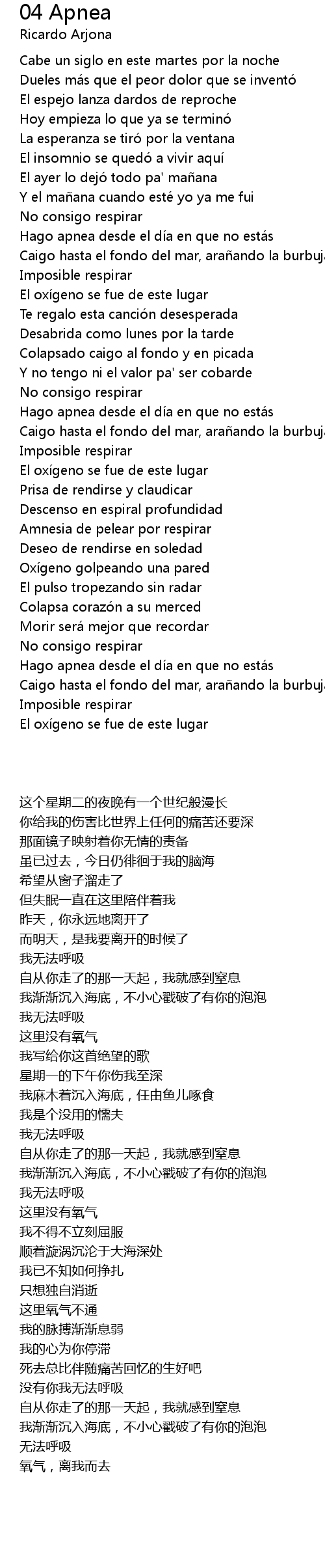 | [03:19.000] | Hago apnea desde el día en que no estás |