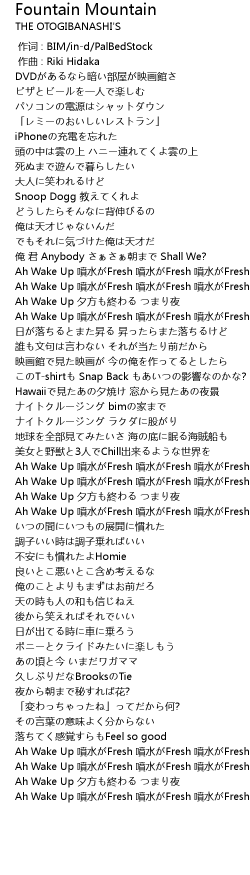 | [01:51.65] | Ah Wake Up 噴水がFresh 噴水がFresh 噴水がFresh |