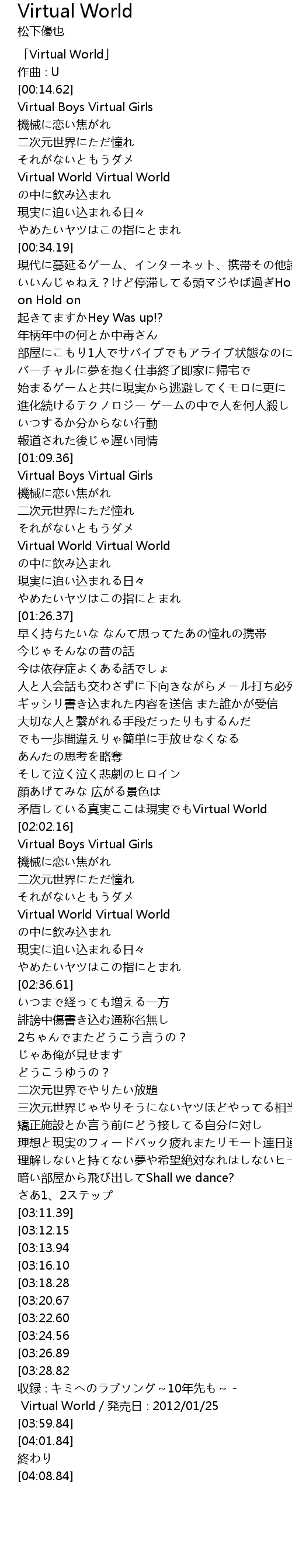 | [03:37.99][03:20.67] | Virtual World Virtual World |