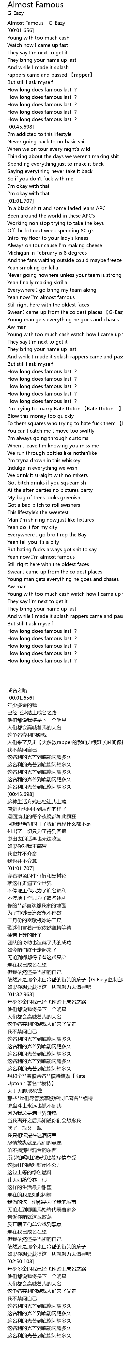 | [00:00.506] | Almost Famous GEazy |