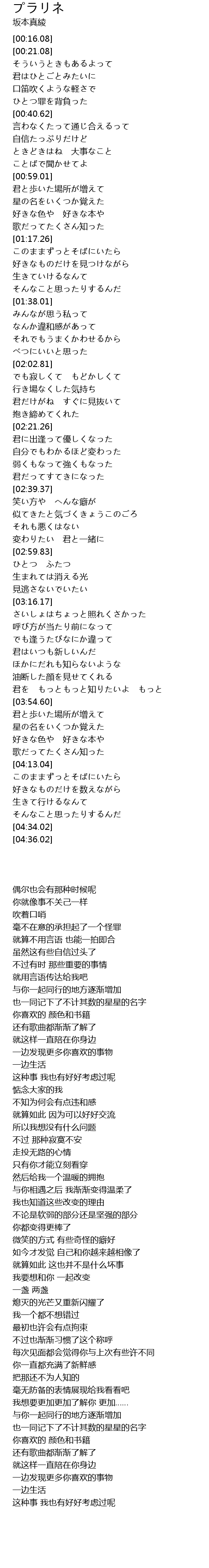 | [04:18.13] | 好きなものだけを数えながら |