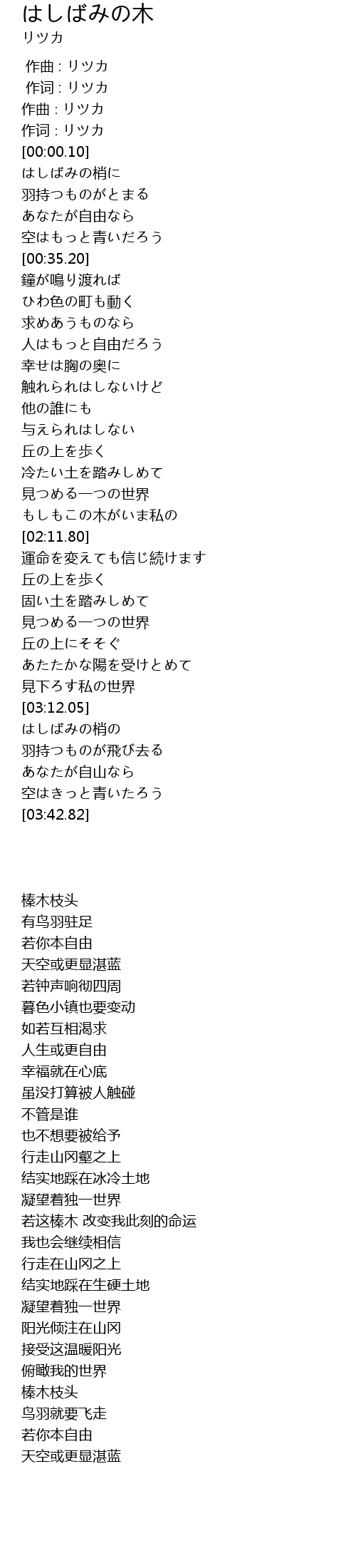 作词∶リツカ |