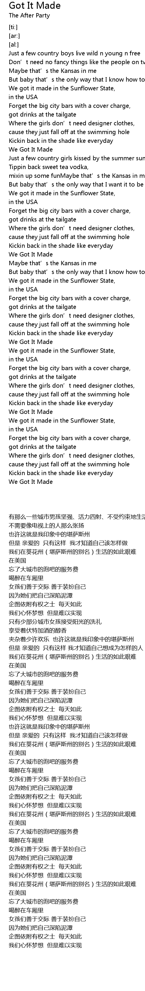 | [00:46.51] | Just a few country girls kissed by the summer sun |