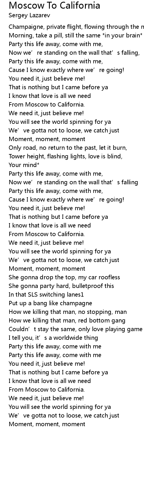 | Song | Moscow To California |