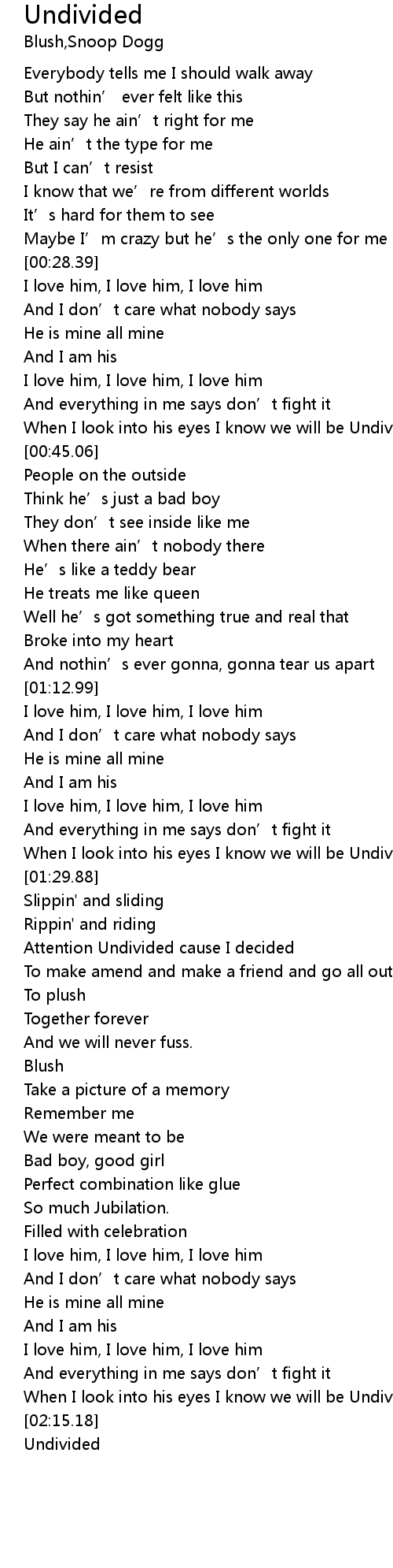 | [00:40.91] | When I look into his eyes I know we will be Undivided |