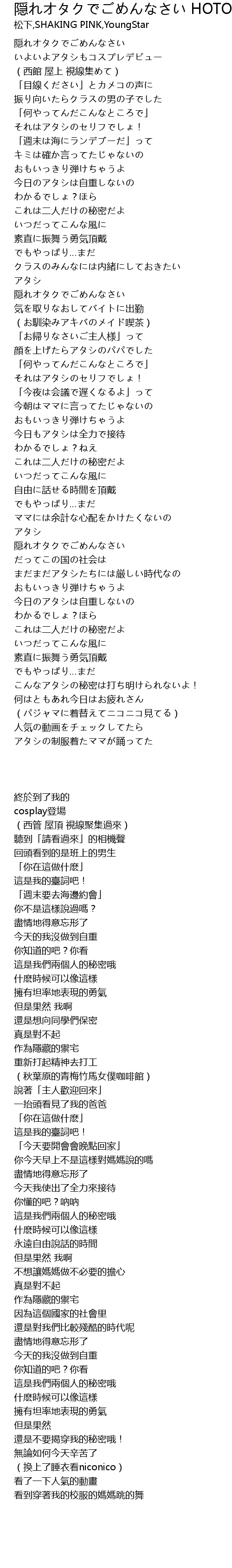 | [00:00.00] | 隠れオタクでごめんなさい |