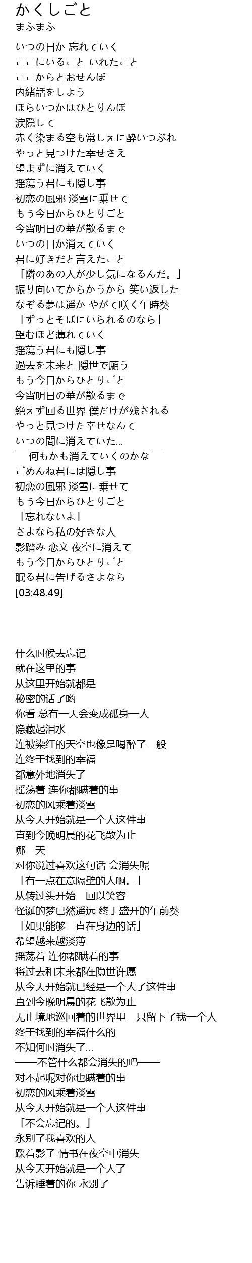 | [03:38.32] | 眠る君に告げるさよなら |