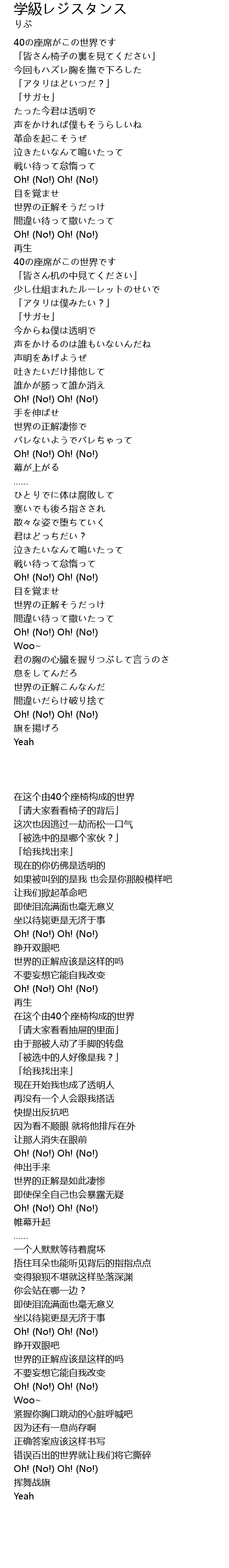 | Song | 学級レジスタンス |