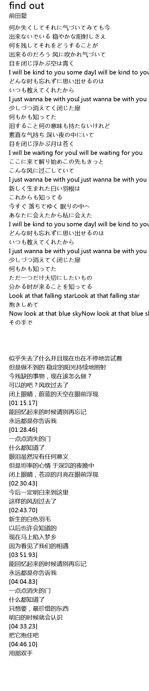 | [04:33.23] | Look at that falling starLook at that falling star |