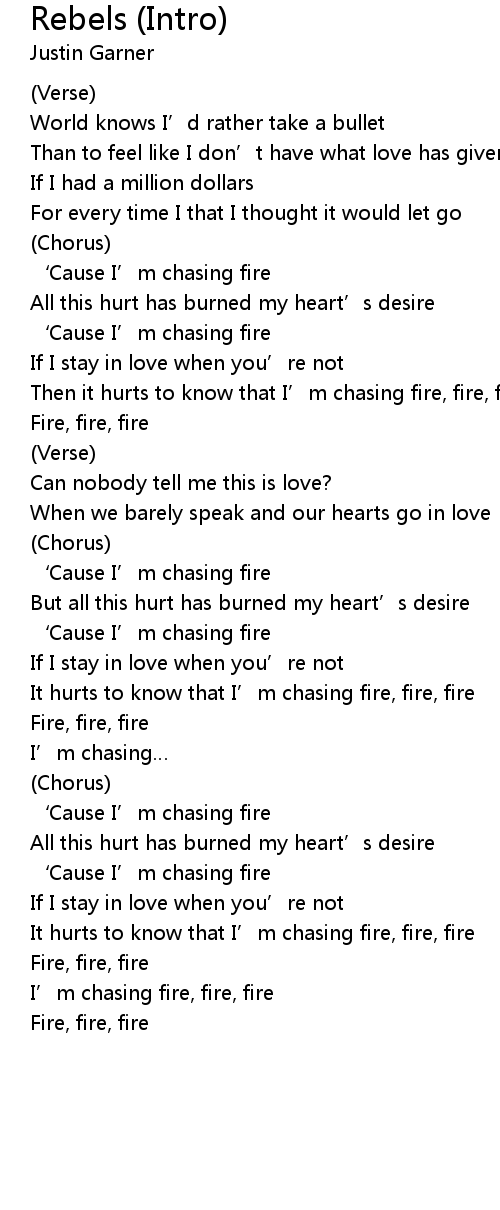 | It hurts to know that I’m chasing fire, fire, fire | |