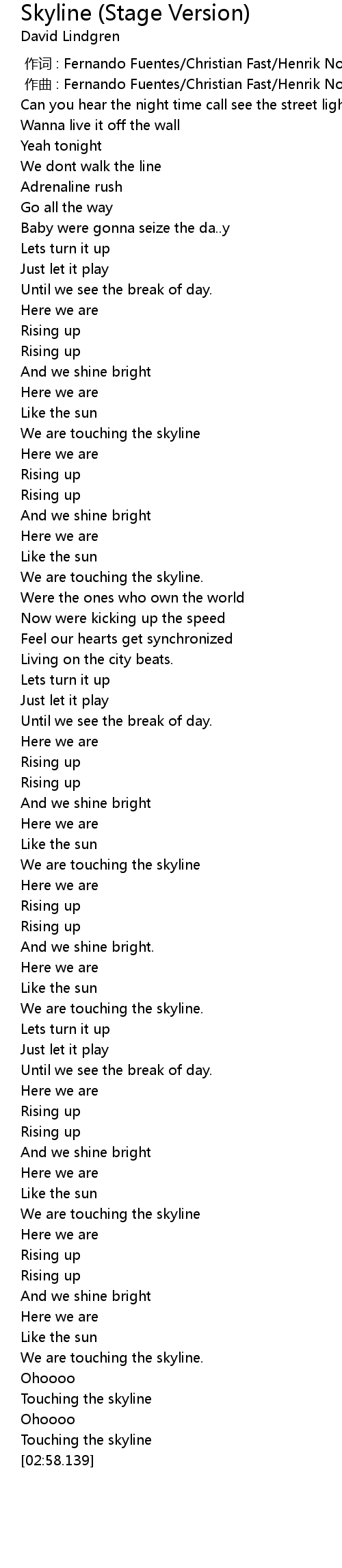 | [02:32.508] | We are touching the skyline |