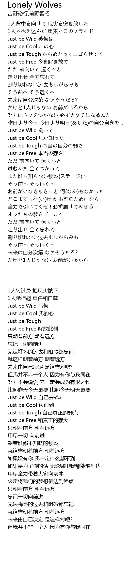 | [01:47.58] | Just be Wild 闘って |