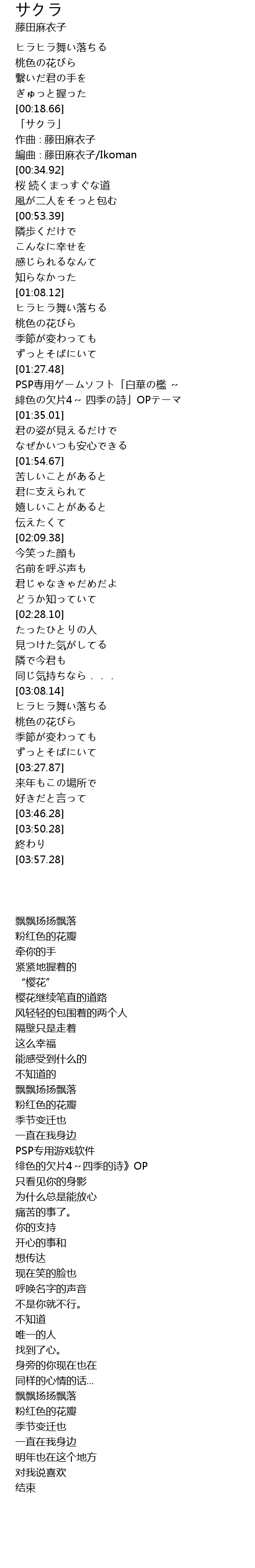 | [00:35.92] | 桜 続くまっすぐな道 |