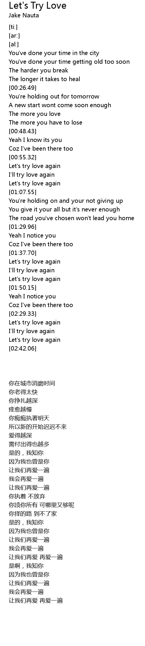 Let's try love again |