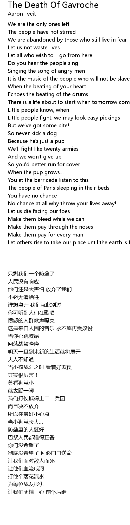 | Song | The Death Of Gavroche |