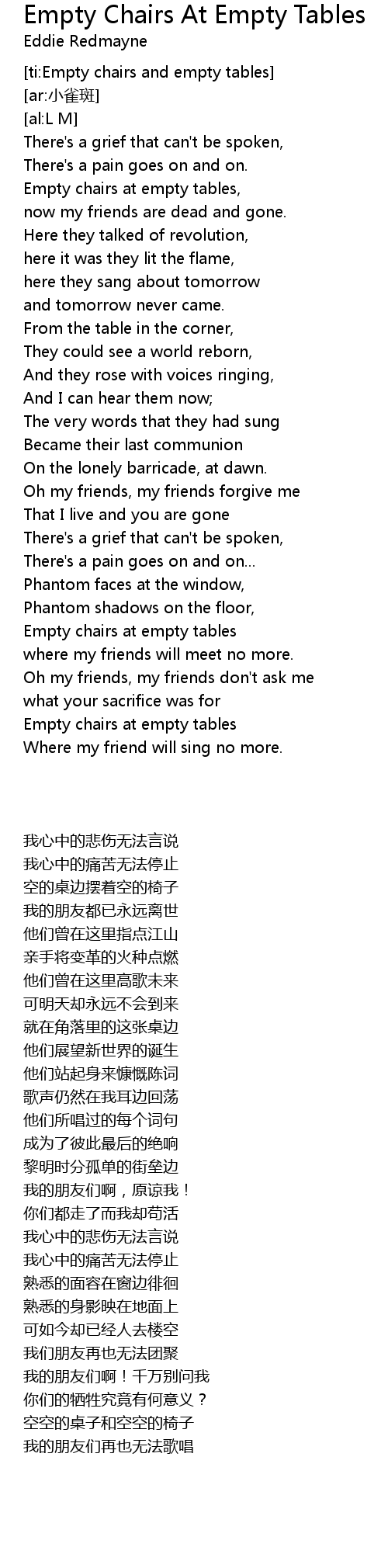 | [ti:Empty chairs and empty tables] | |
