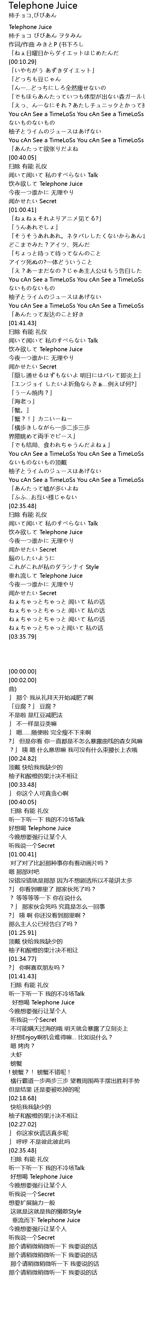 | [01:51.91] | 饮み欲して Telephone Juice |