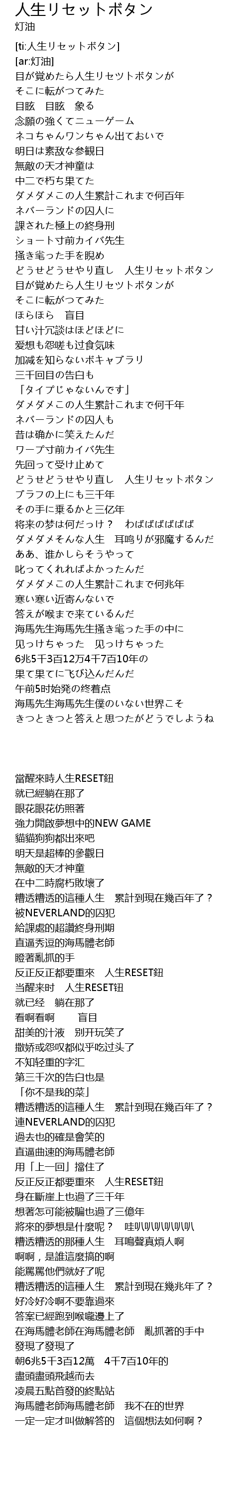 | [02:01.228] | どうせどうせやり直し 人生リセットボタン |