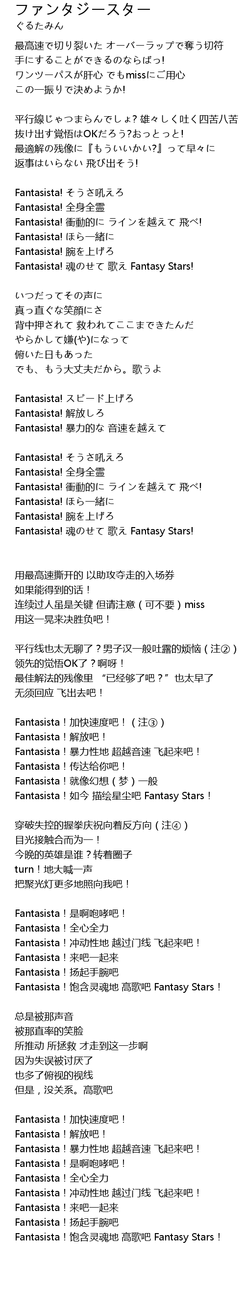 | Fantasista!饱含灵魂地 高歌吧 Fantasy Stars! |