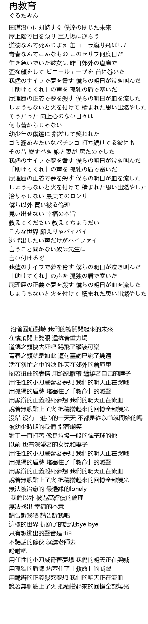 | Song | 再教育 |